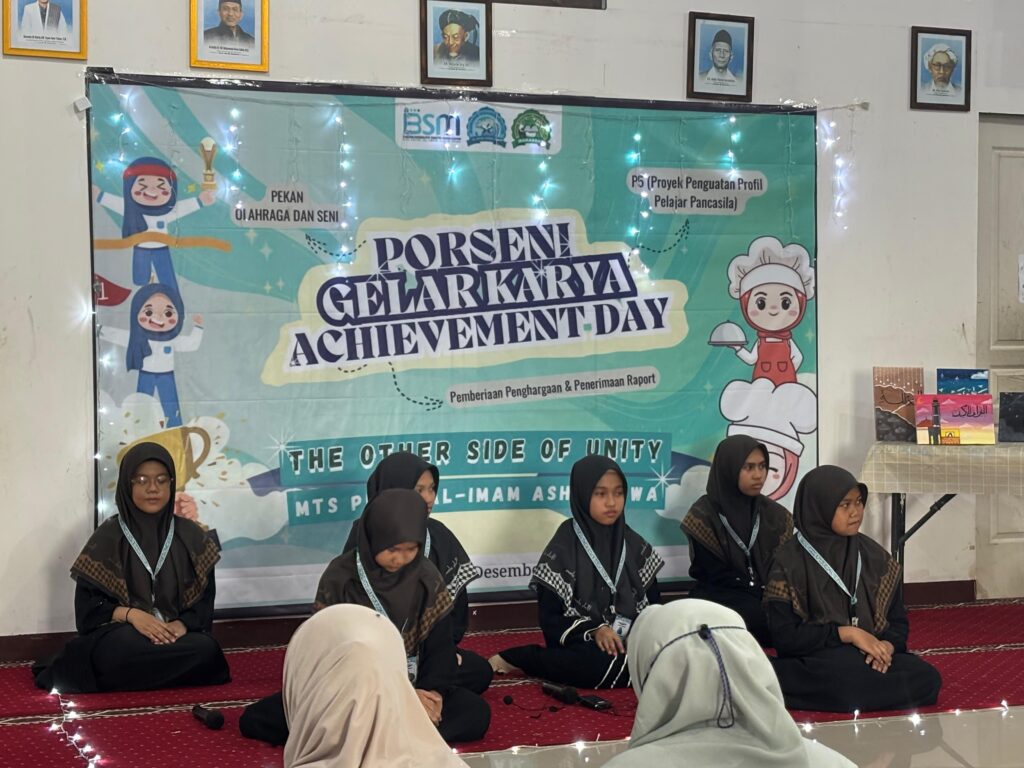 MTs Putri Al-Imam Ashim Gowa dengan bangga menggelar kegiatan akhir semester yang penuh semangat dan kegembiraan! Pada tanggal 20 hingga 23 Desember 2024, seluruh civitas akademika bersama para santri menyelenggarakan rangkaian acara menarik yang terdiri dari Porseni (Pekan Olahraga dan Seni), Gelar Karya, dan Achievement Day selama empat hari penuh inspirasi.