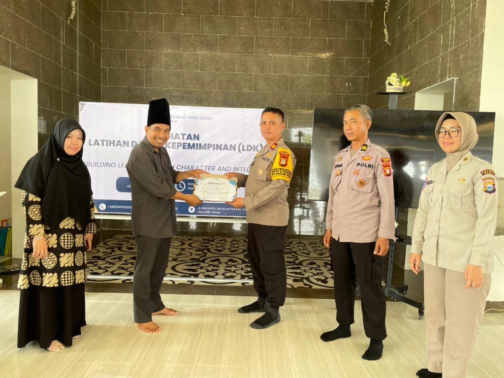 MTs Putri Al-Imam Ashim Gowa menggelar Latihan Dasar Kepemimpinan (LDK) bersama Polres Gowa pada tanggal 24 hingga 26 Oktober 2024 dengan tema “Building Leadership with Character and Integrity.” Kegiatan ini bertujuan membentuk karakter pemimpin muda yang kuat, berintegritas, dan memiliki bekal pengetahuan serta keterampilan luas sebagai bekal kepemimpinan di masa depan.